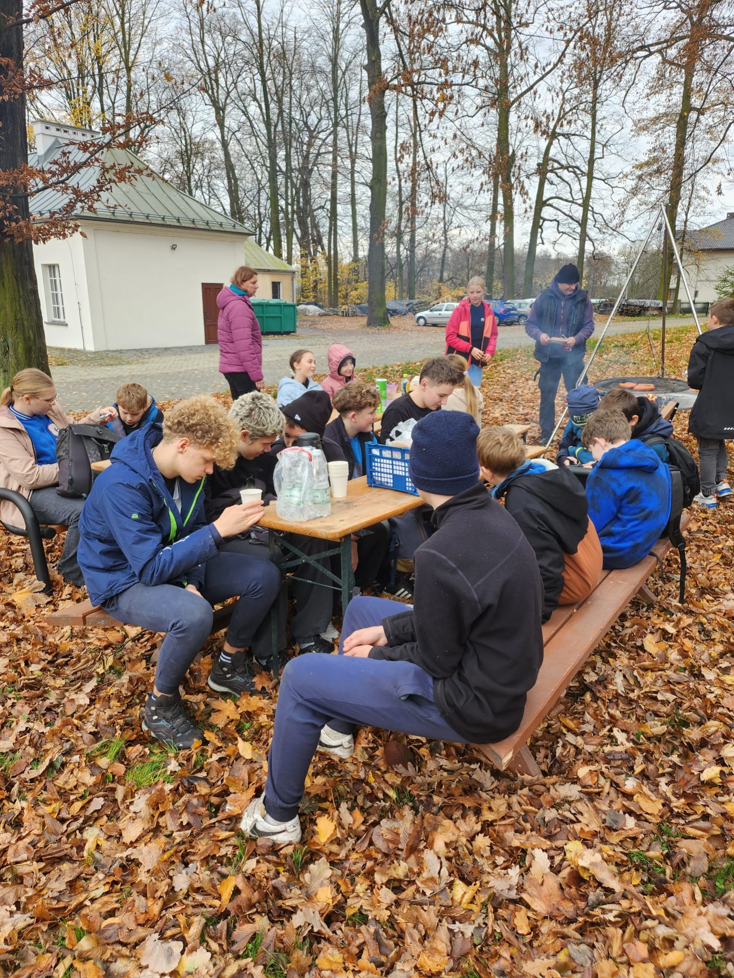 - We wtorek 11 listopada dość spora grupa naszych wolontariuszy (28 osób) wraz z opiekunami spędziła świąteczne dopołudnie na akcji grabienia liści w ośrodku „Zameczek” w Rudołtowicach. Uczniowie już po raz trzeci pomagali w jesiennych pracach w ogrodzie sensorycznym i na terenie wokół budynków. Jesteśmy bardzo szczęśliwi, że naszą pomocą i pracą możemy okazać wsparcie dzieciom z ośrodka i ich opiekunom. Tradycyjnie pani Ola - wicedyrektor ugościła nas ciepłą herbatką, słodkimi smakołykami, a na koniec wszyscy wspólnie zasiedli do ogniska i spędzili trochę czasu razem na rozmowach. Jeszcze raz bardzo dziękujemy za umożliwienie nam wzięcia udziału w tej akcji.
